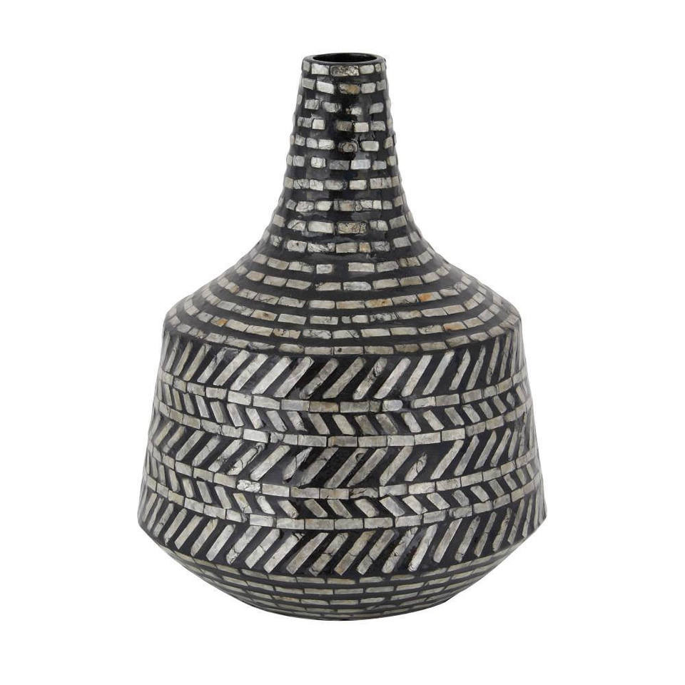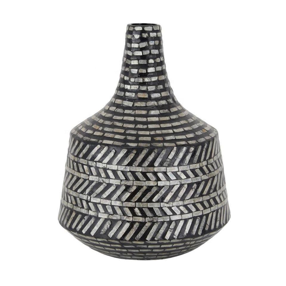แจกันทรงเปลือกหอยสีดำสำหรับตกแต่งบ้าน,แจกันทรงสูง Capiz แจกันดอกไม้แบบตั้งโต๊ะแจกันฝังมุกสีดำ