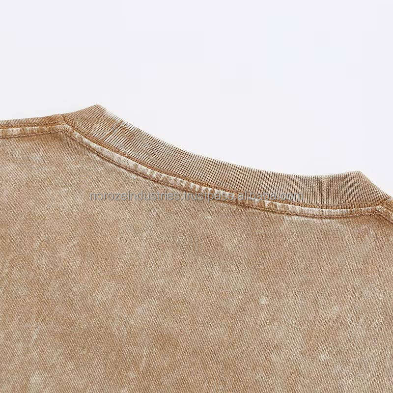 ผู้ผลิตเสื้อยืดคุณภาพสูง แบรนด์ของคุณเอง โลโก้แบบกำหนดเอง เสื้อยืดหนานุ่มสไตล์วินเทจ ซักแล้ว ให้ลุคแบบย้อนยุค ทำสีแบบ Acid Wash ผ้าฝ้าย 100%