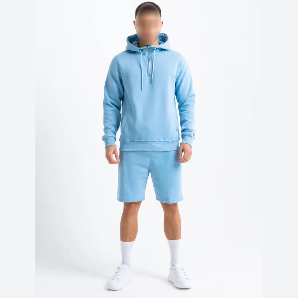 เสื้อฮู้ดมีซิปครึ่งตัวพร้อมกางเกงขาสั้น