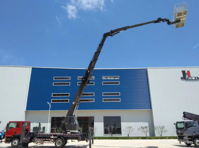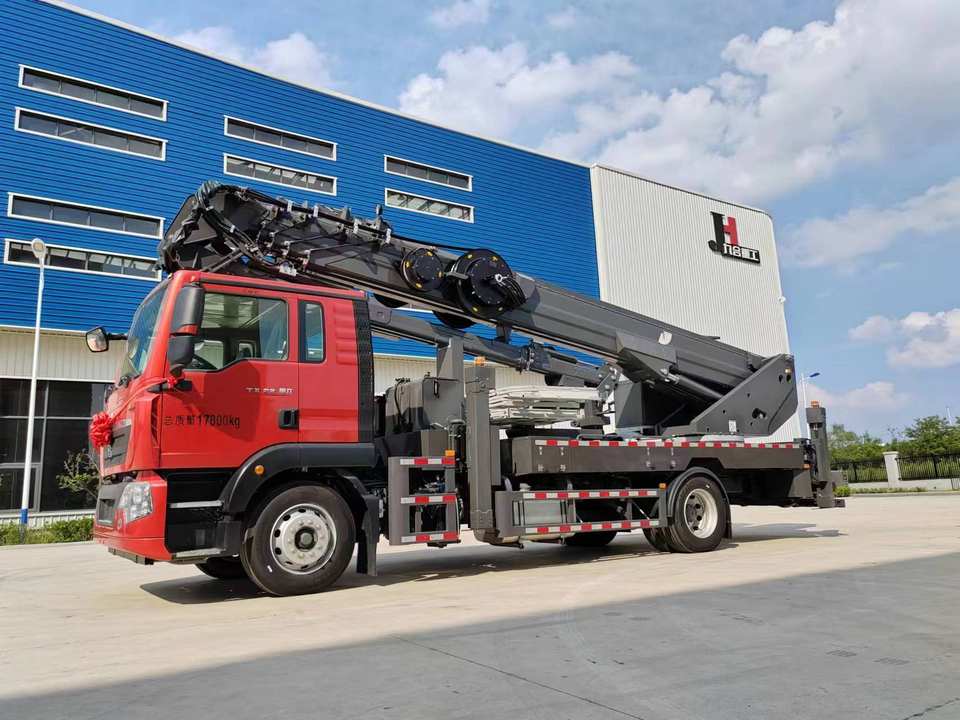 Jiuhe รถยกทางอากาศรถบรรทุก45VK ทำงานแพลตฟอร์มรถบรรทุก HOWO แชสซีรถทำงานสูง