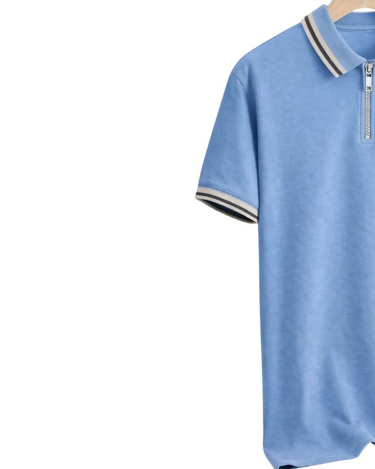 เสื้อโปโลผู้ชายสีฟ้าอ่อน แขนสั้น คอริบ ผลิตโดยผู้ผลิตเสื้อผ้าลำลองสำหรับกอล์ฟ ผ้าคอตตอนผสม รับผลิตตามแบบ