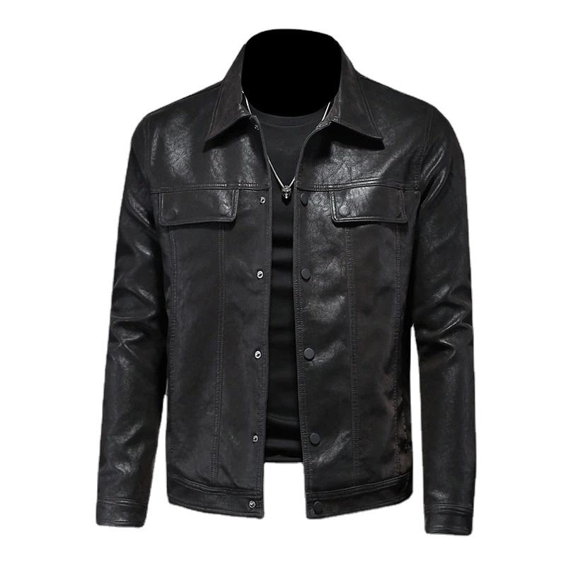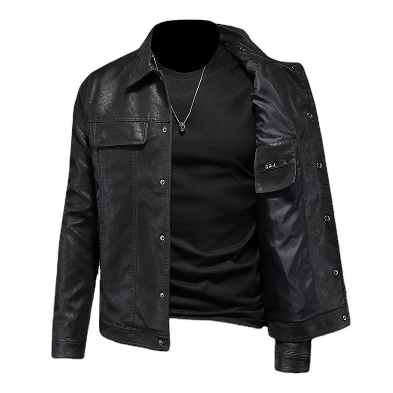 ผู้ผลิตผลิตเสื้อแจ็คเก็ตแฟชั่นคุณภาพสูง ดีไซน์ทันสมัยสำหรับผู้ชาย เสื้อแจ็คเก็ตหนังแกะแบบคอปกพับได้ตามสั่ง