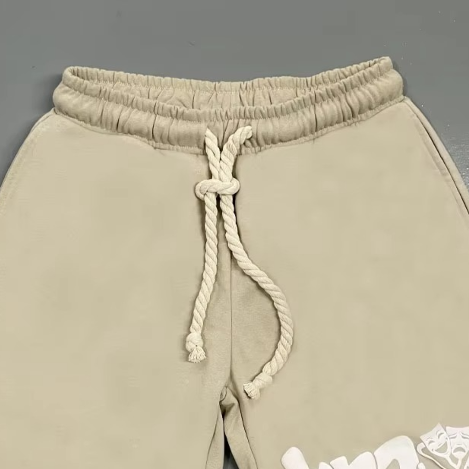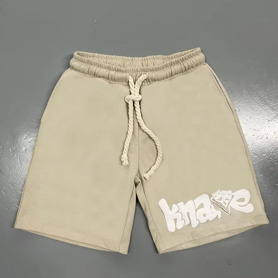 กางเกงกีฬาขาสั้นผ้าคอตตอน100% เอวสูงสำหรับผู้ชายกางเกงขาสั้นพิมพ์ลายพองแบบลำลองฤดูร้อน