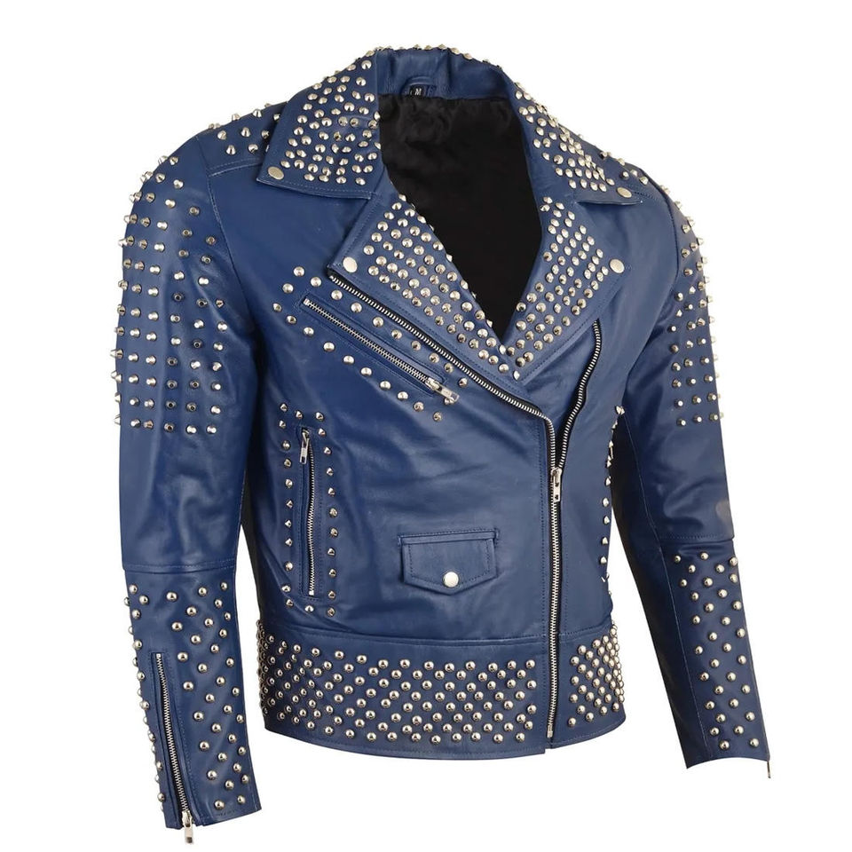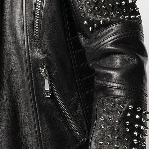 เสื้อแจ็คเก็ตหนังผู้ชายประดับหมุด