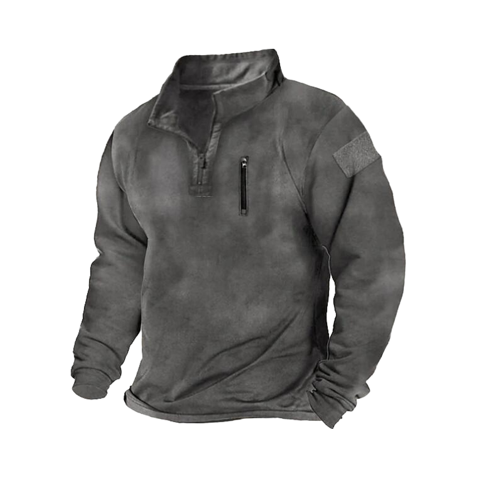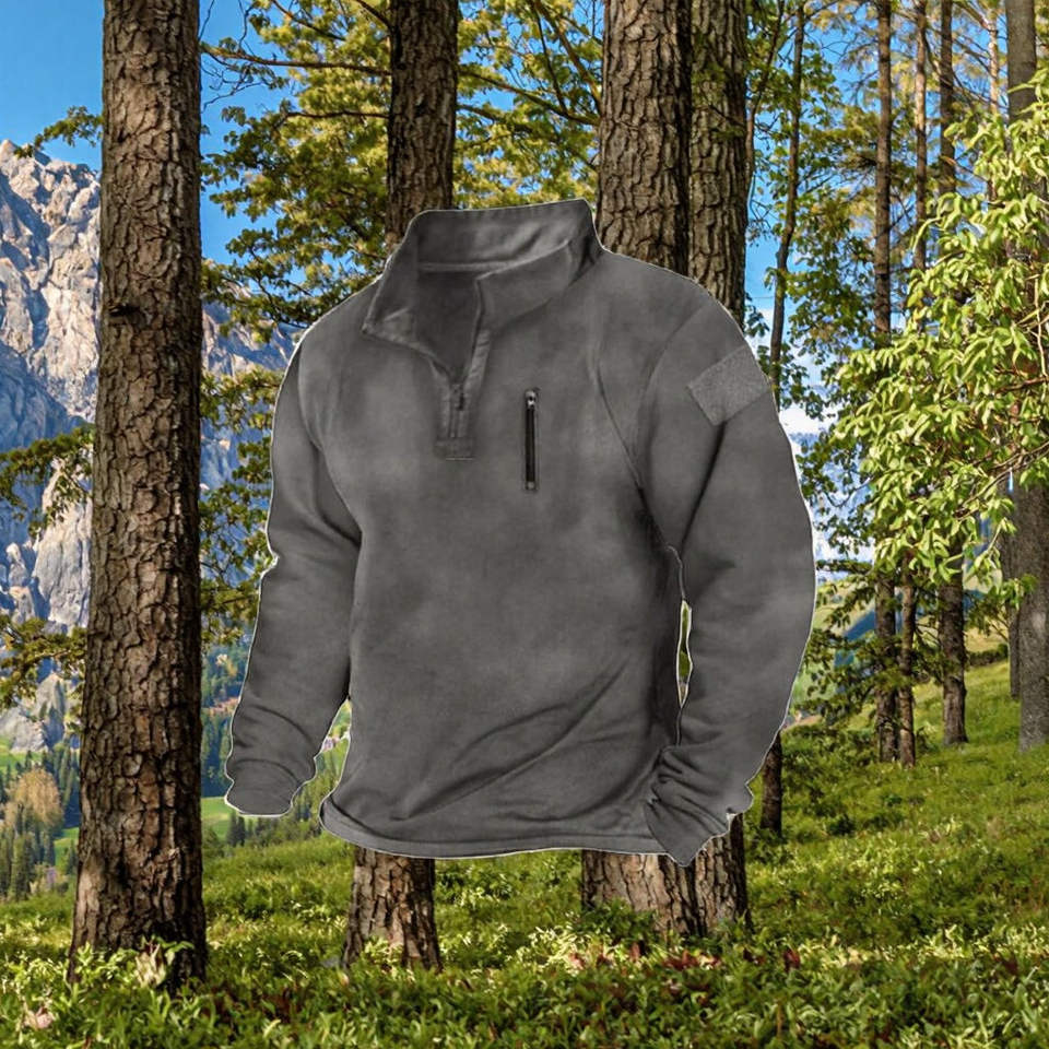 เสื้อผู้ชายดีไซน์ใหม่จากโรงงาน ผลิตจากผ้าถักแบบไม่ทอ ซักแล้ว ใส่สบาย คอตั้ง ซิป ¼ สีพื้น สไตล์ทหาร เป็นมิตรกับสิ่งแวดล้อม ทรงปกติ