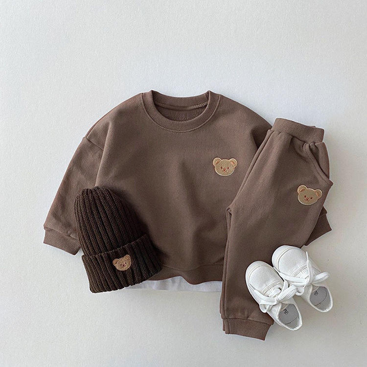 ชุดเสื้อผ้าเด็กทารก 2 ชิ้น ลายหมีแฟชั่นใหม่จากผู้ผลิต ผ้าฝ้าย สำหรับเด็กผู้หญิงและเด็กผู้ชาย