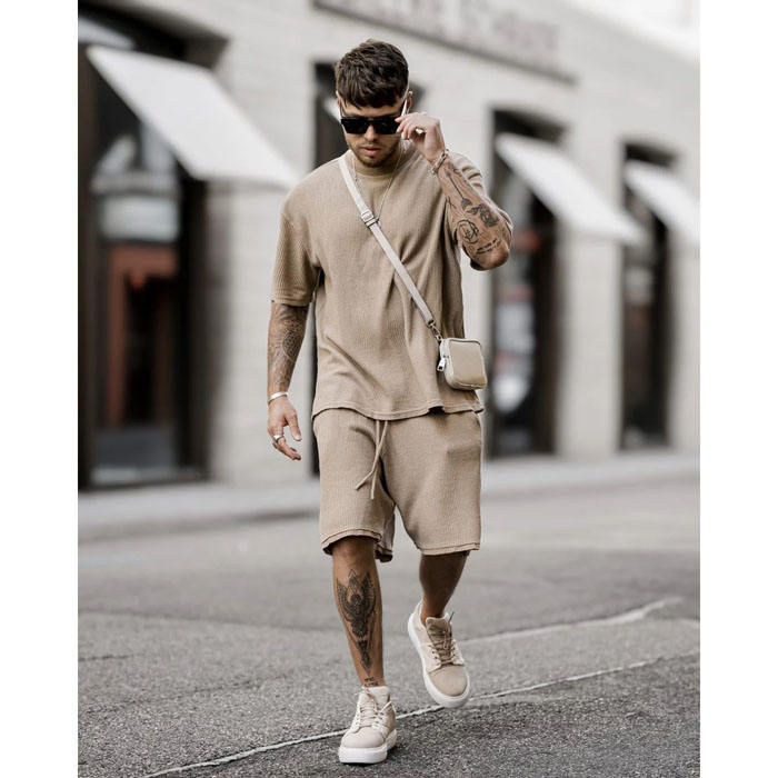 ชุดกางเกงขาสั้นสำหรับผู้ชาย5XL เสื้อแขนสั้นและกางเกงขาสั้นเสื้อพิมพ์ลายโลโก้ตามสั่งสำหรับฤดูร้อน