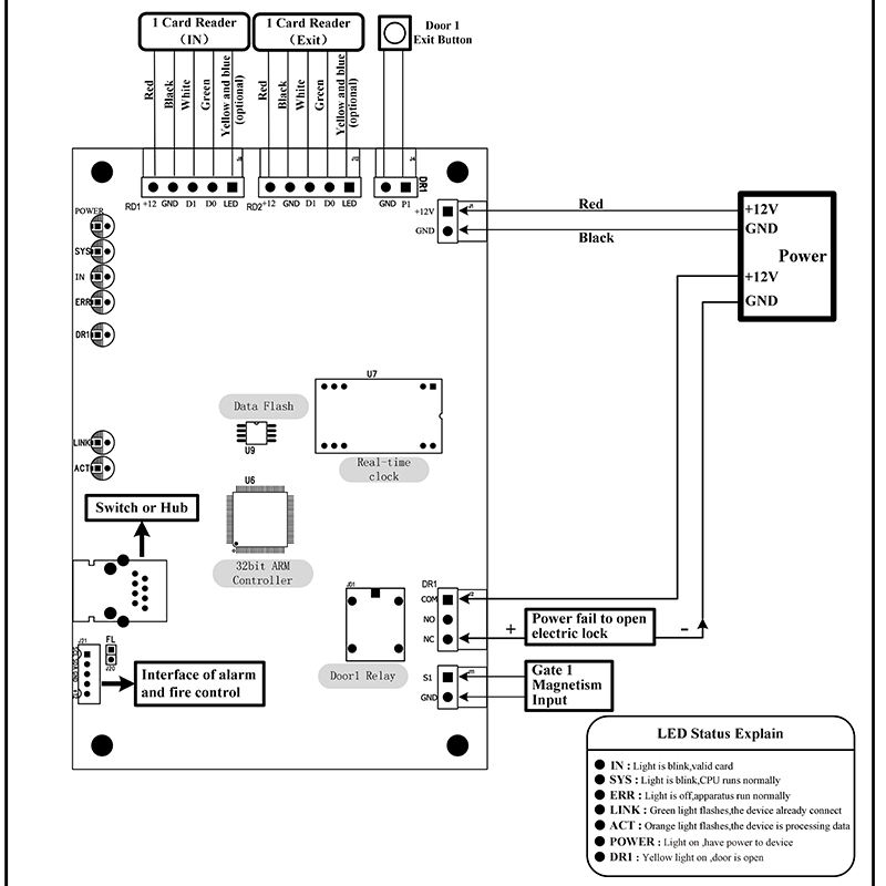 อินพุตแม่เหล็กของประตู:1 ช่องสัญญาณ (อินพุตแบบแห้ง)