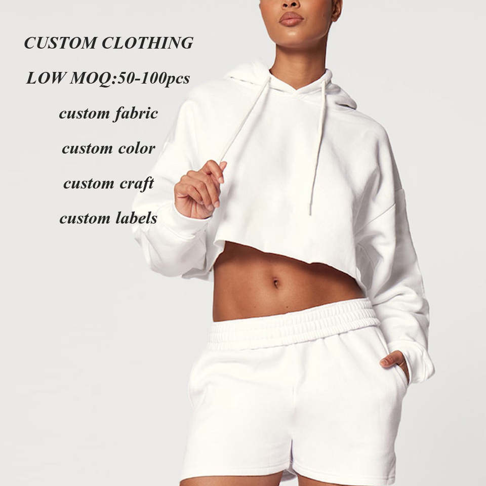 เสื้อฮู้ดผ้าดิบสำหรับผู้หญิงเสื้อครอปสไตล์ฝรั่งเศสเทอร์รี่แบบเรียบสีล้วน