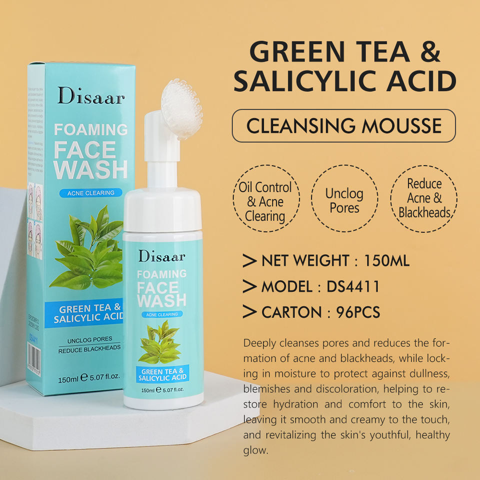 โฟมล้างหน้าควบคุมความมัน ชาเขียว ทำความสะอาดผิวหน้า ลดสิวเสี้ยน สิวอักเสบ กระชับรูขุมขน ให้ความสดชื่น