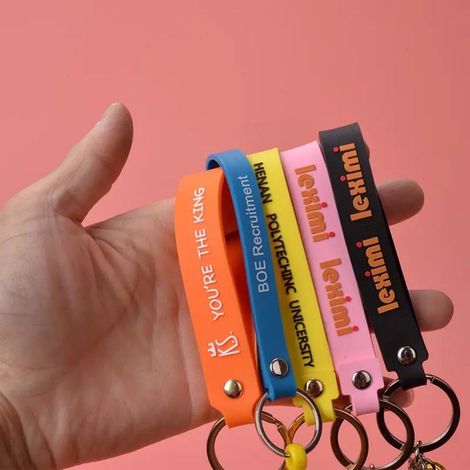 สายคล้องกุญแจยาง PVC ราคาถูก พิมพ์โลโก้ตามสั่ง ผลิตโดยผู้ผลิตโดยตรง พร้อมบริการสลักตัวอักษรแบรนด์ OEM บนสายรัดข้อมือ