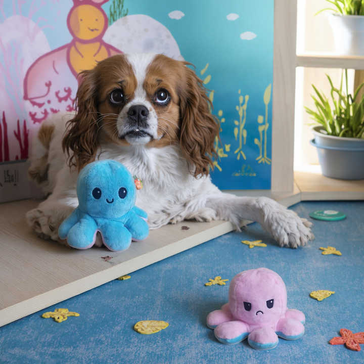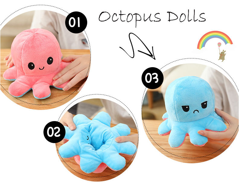 ของเล่นสัตว์เลี้ยงยัดไส้ตุ๊กตาสัตว์ทะเลของเล่นปลาหมึกน่ารักสีสันสดใสเปลี่ยนกลับได้ของเล่นสุนัขส่งเสียงได้แบบโต้ตอบ