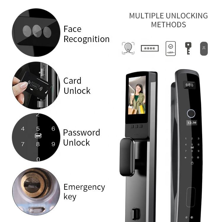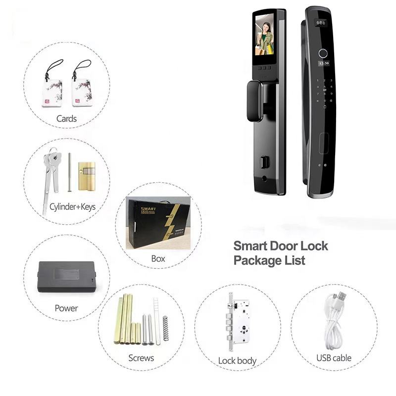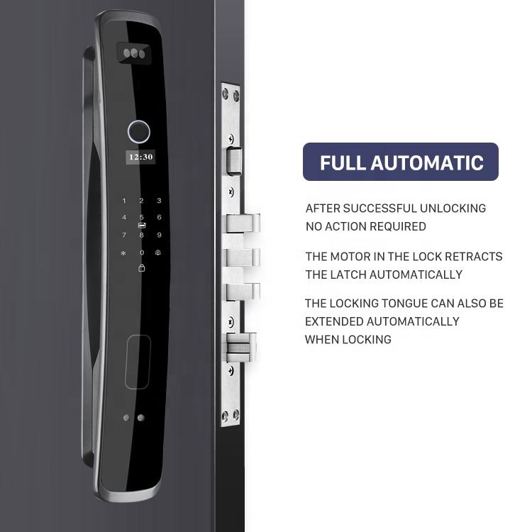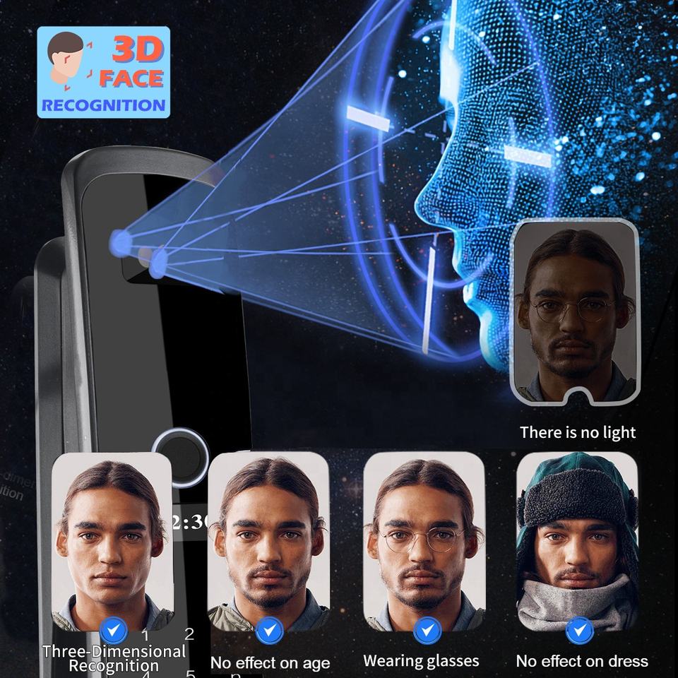 ราคาโรงงาน ล็อคดิจิตอลอัตโนมัติเต็มรูปแบบ กล้อง Wifi ระบบจดจำใบหน้า 3 มิติ ล็อคประตูอัจฉริยะแบบไบโอเมตริกซ์ สแกนลายนิ้วมือ