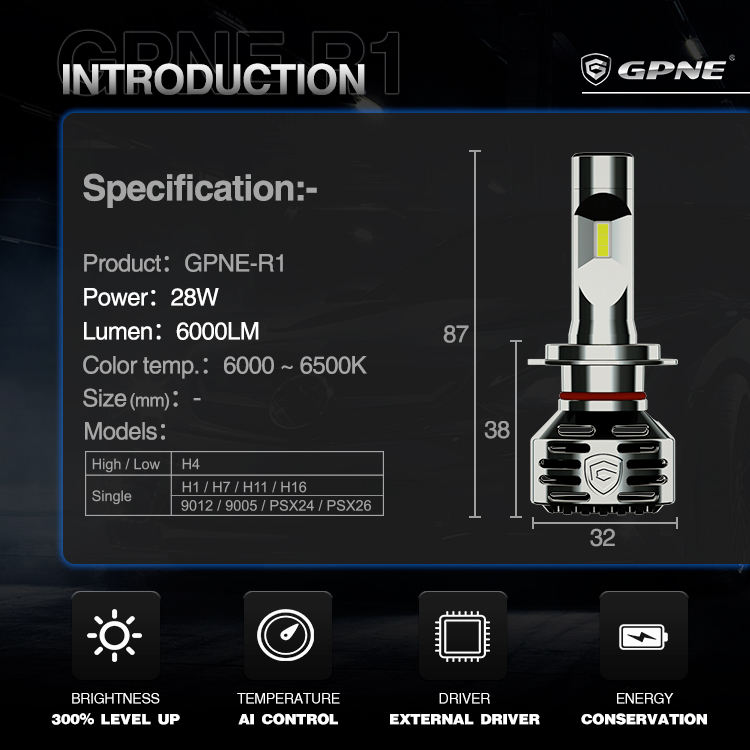 H1, H4, H7, H11, H13, H16, 880, 9005, 9006, 9007, 9012, PSX24, PSX26OE NO