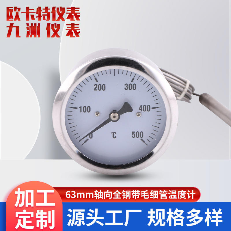 ผู้ผลิตผลิตเทอร์โมมิเตอร์วัดอุณหภูมิแบบกดดัน ขนาด 63 มม. ทำจากเหล็กกล้าไร้สนิมทั้งหมด พร้อมหลอดแคปิลลารี