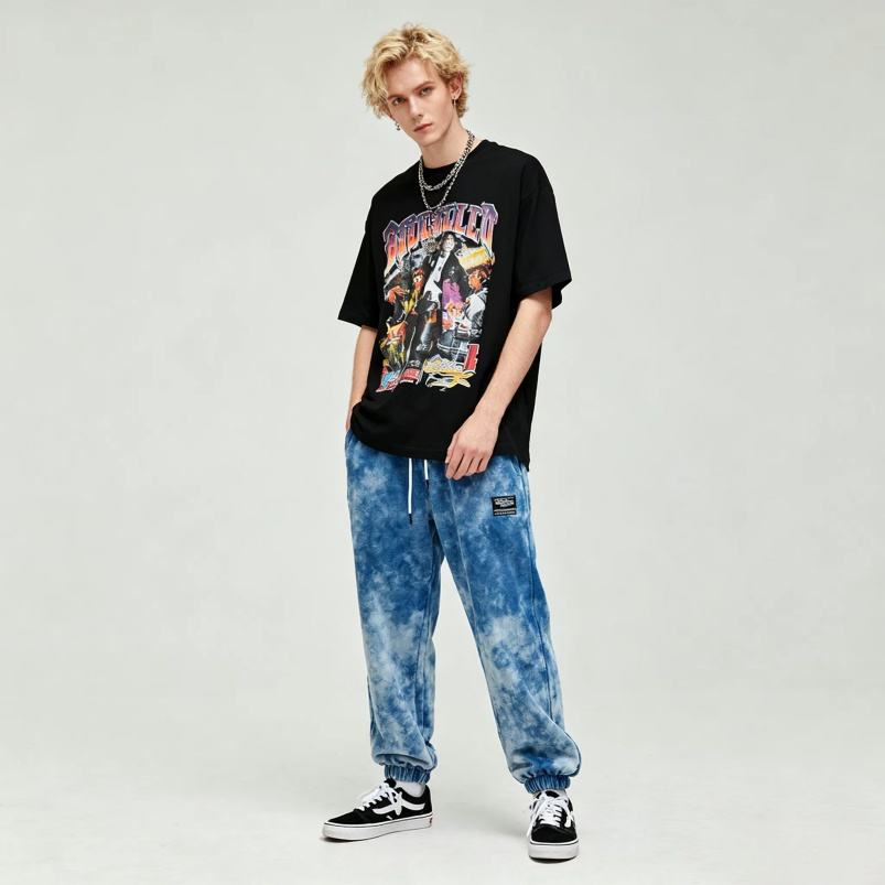 เสื้อยืดครอปบ็อกซี่ออกแบบได้เองสำหรับผู้ชายพิมพ์ลายกราฟิกหน้าจอ DTG วินเทจประดับพลอยเทียมสำหรับผู้ชาย