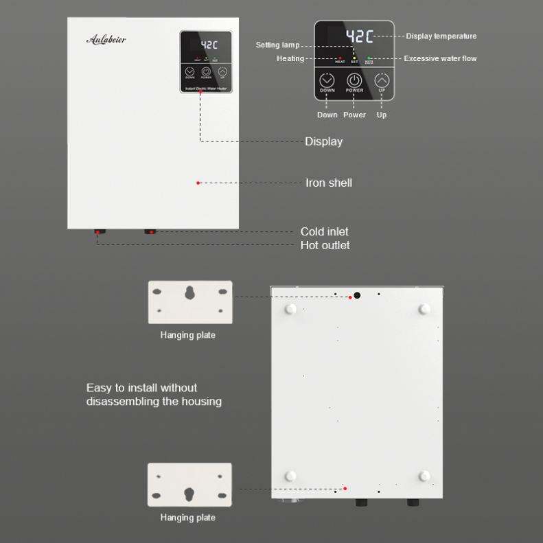โรงอาบน้ำขนาดเล็ก220V 12kW อ่างอาบน้ำขนาดเล็กห้องอาบน้ำฝักบัวไฟฟ้าเครื่องทำน้ำอุ่นแบบไม่มีถัง