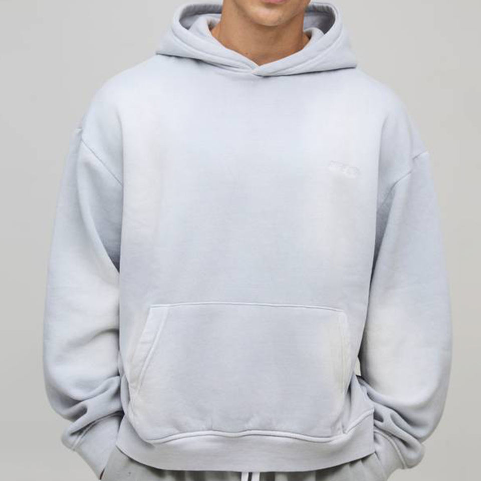 เสื้อฮู้ดดี้ผ้าฟลีซสีเทาแบบสเปรย์ล้าง ระบายอากาศได้ดี ผลิตจากผ้าฝ้าย 100% สำหรับผู้ชาย ขอบแขนและชายเสื้อแบบริบ ใส่สบายๆ สำหรับฤดูใบไม้ร่วง