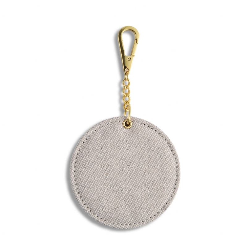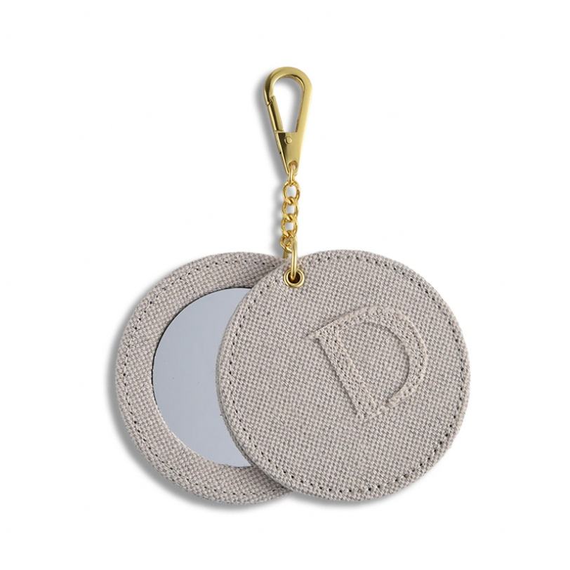 กระจกแต่งหน้าพกพาแบบกลมขนาดเล็ก สีเทา ผ้าลายนูนสองด้าน พร้อมสายคล้อง