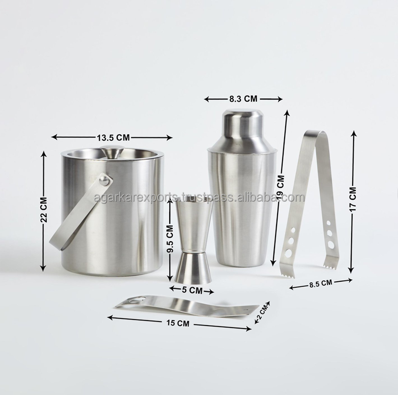 ชุดบาร์สแตนเลสพร้อมถังน้ำแข็ง – ชุดเชคเกอร์ค็อกเทลและที่เปิดขวด