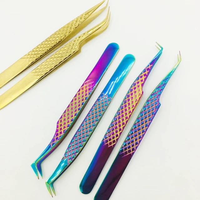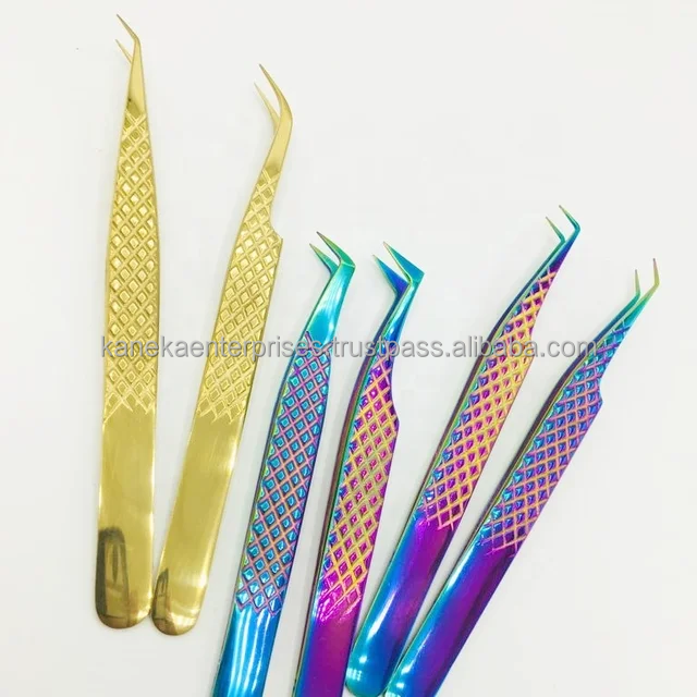แหนบต่อขนตาปลอมเคลือบไทเทเนียมสีทองหลายชั้นทำจากสแตนเลส