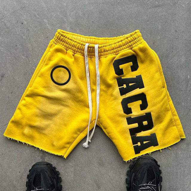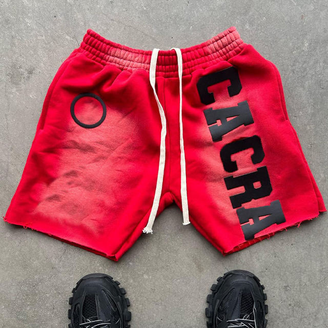 กางเกงขาสั้นผู้ชายผ้าฝ้ายเฟรนช์เทอร์รี่แบบเรียบ แต่งลายขาดสไตล์วินเทจ ล้างสีแบบแอซิดวอช ผลิตโดย Manufacturer Streetwear พร้อมปักโลโก้ตามสั่ง เป็นมิตรต่อสิ่งแวดล้อม