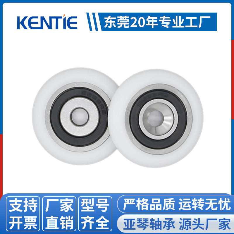 ลูกล้อประตูและหน้าต่างแบบฝังหัว ผลิตจากสแตนเลส 420+POM พร้อมลูกปืน S688RS ขนาด 4*24*6 มม. หุ้มยาง ผลิตโดยผู้ผลิต