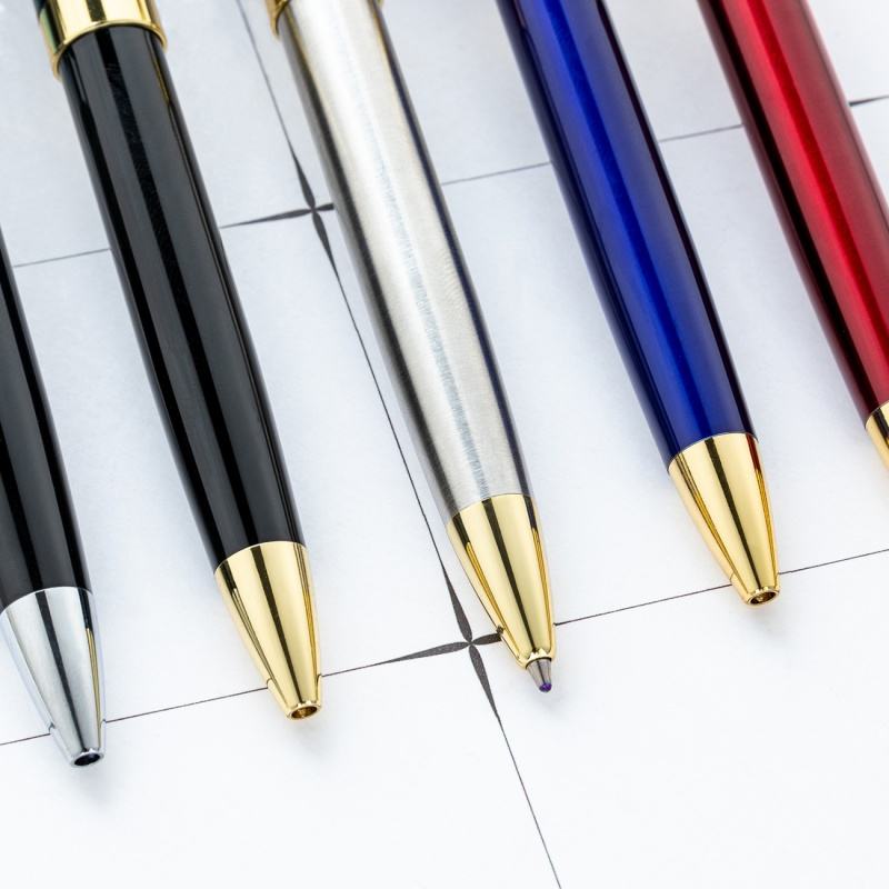 ผู้ผลิตจัดหาปากกาลูกลื่นแบบหมุนได้ ขนาด 1.0 มม. คุณภาพพรีเมียม หลายสี สำหรับธุรกิจ พิมพ์โลโก้ได้ ใช้เขียนในสำนักงาน