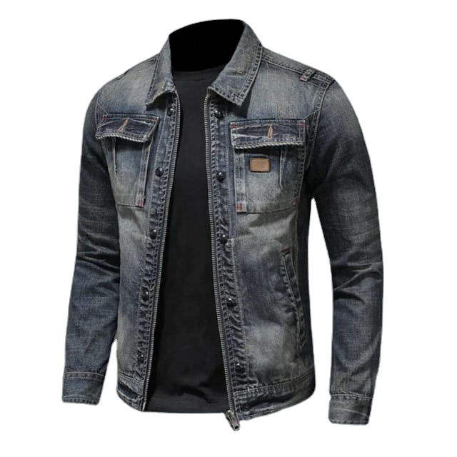 แจ็กเก็ตเดนิมของผู้ชายเสื้อแจ็กเก็ตผ้าเดนิมทำจากโรงงานดีไซน์ที่เป็นเอกลักษณ์