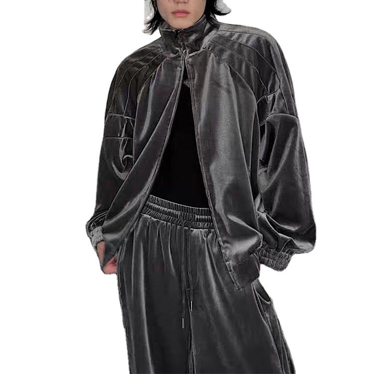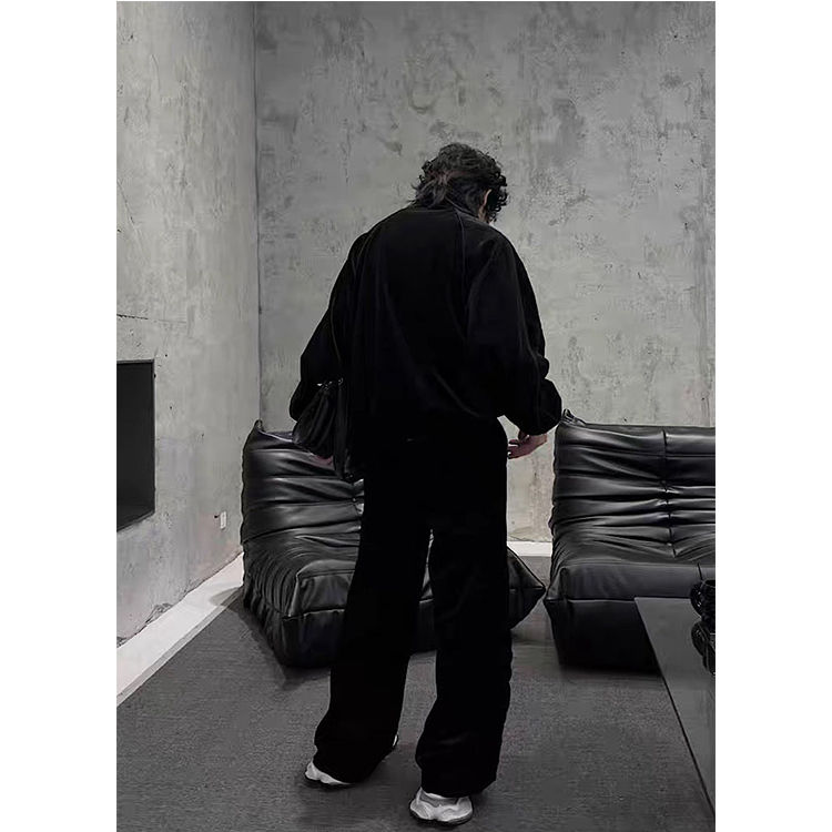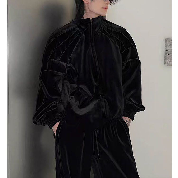 ชุดวอร์มผู้ชายแบบมีฮู้ด แจ็คเก็ตผ้ากำมะหยี่แบบมีซิป กางเกงขายาวทรงกว้าง ชุดลำลองสำหรับฤดูหนาว ชุดสองชิ้น