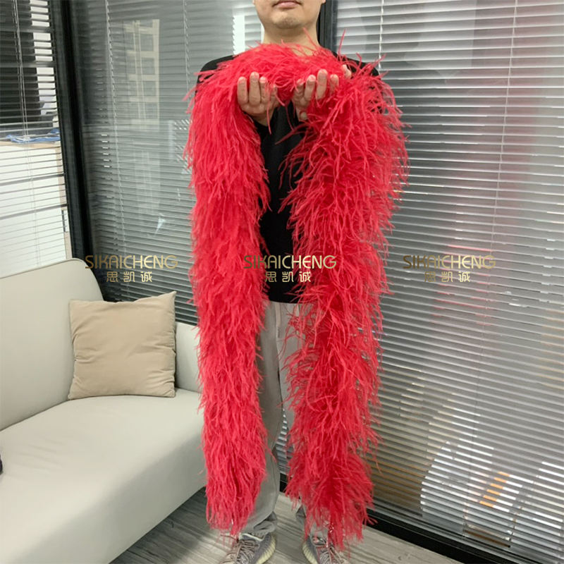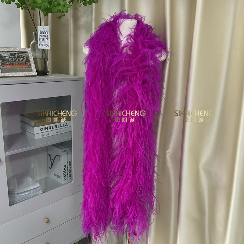 ขนนกกระจอกเทศ1-30ply ตัดขอบบนสายสีรุ้งขนนกงูเหลือม