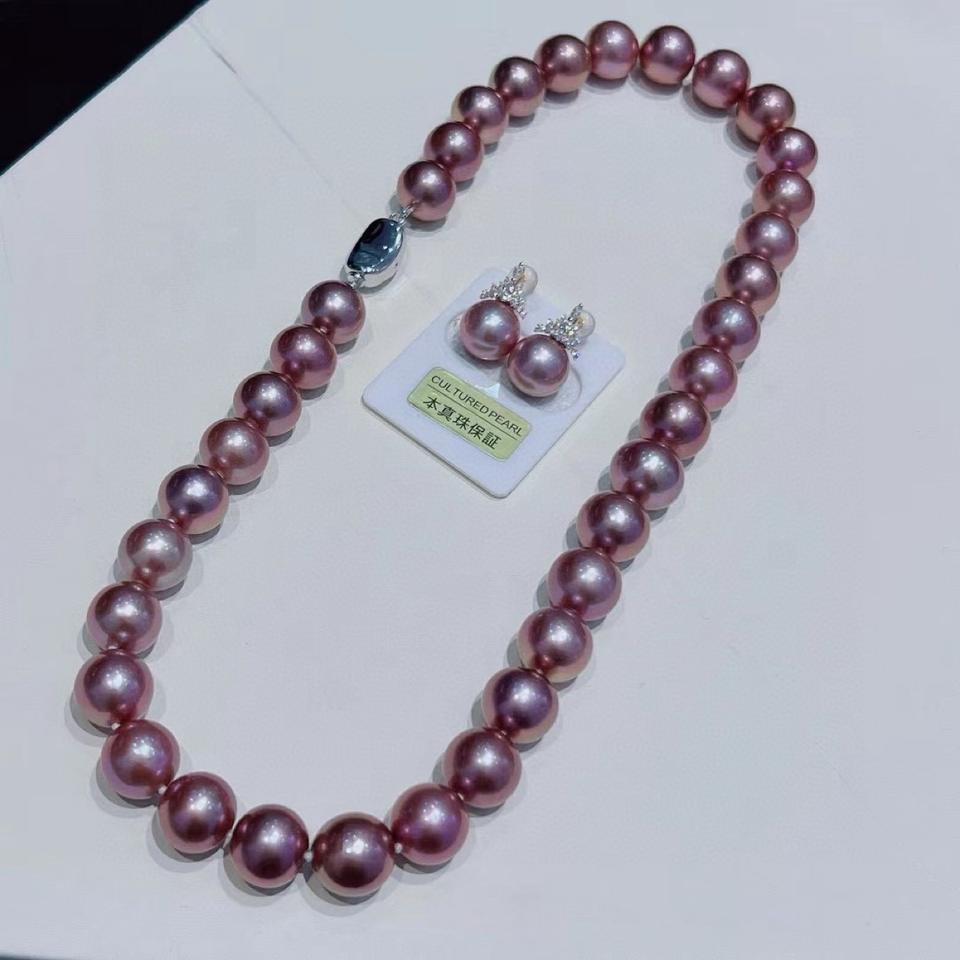 ผู้ผลิตขายส่ง 11-13 มม. สร้อยคอไข่มุกสีม่วงธรรมชาติชุดต่างหูเครื่องประดับชั้นดีข้อบกพร่องเล็กน้อยกล่องของขวัญรวมอยู่ด้วยเวนชี