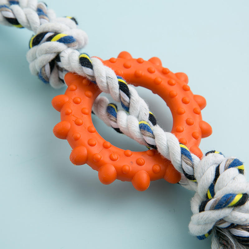ของเล่นสุนัขแบบเชือกฝ้ายทนทานต่อการกัด ผลิตจาก TPR พร้อมลายการ์ตูน บรรจุในถุง สำหรับใช้ในร่ม/กลางแจ้ง ขายส่งจากโรงงาน