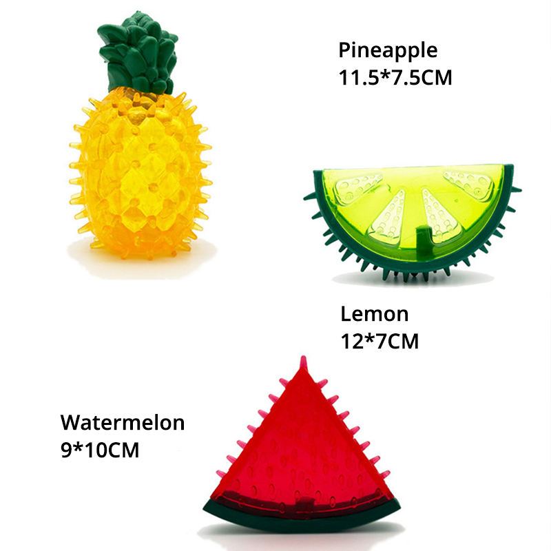 ของเล่นยางรูปผลไม้ลายการ์ตูนน่ารัก ขนาดกลาง สำหรับสุนัข รูปแตงโม เลมอน สับปะรด บรรจุในถุง ขายส่งจากโรงงาน