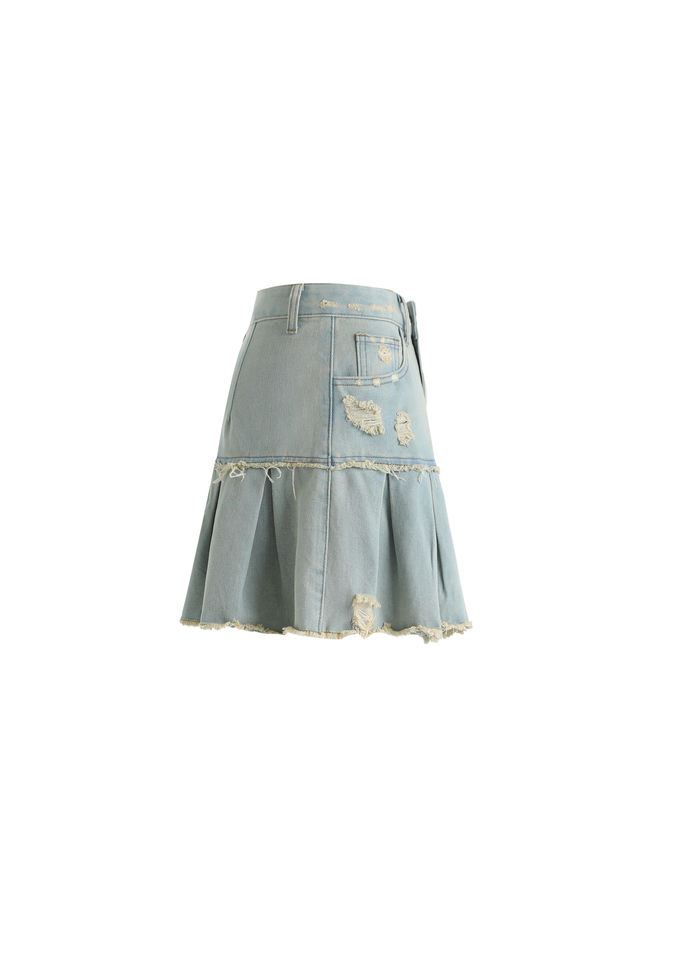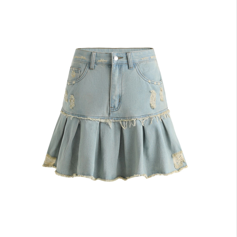 กระโปรงผ้ายีนส์แต่งระบายสำหรับผู้หญิงกระโปรงมินิสำหรับ18% ผ้าฝ้าย73% ผ้าโพลีเอสเตอร์9%