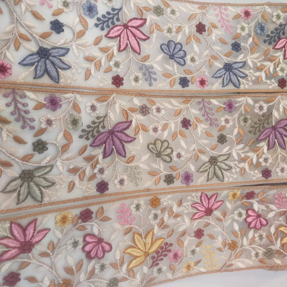 ตาข่ายลูกไม้ผ้าฝ้ายปักเลื่อมผ้าไนล่อนโพลีเอสเตอร์สำหรับตกแต่ง