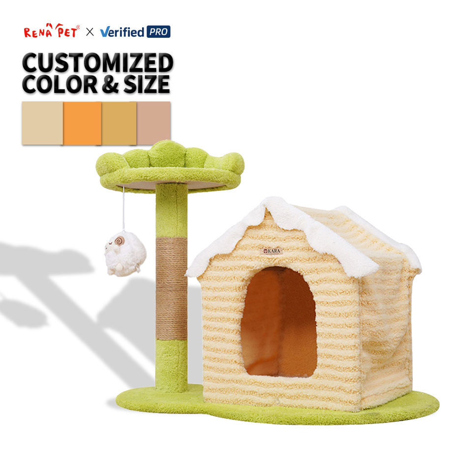 บ้านต้นไม้แมวสำหรับใช้ในบ้าน ประกอบง่าย ผลิตจากไม้และเส้นใยไซซอลคุณภาพสูง พร้อมขนสั้นนุ่มสบาย ขายส่งจากโรงงาน