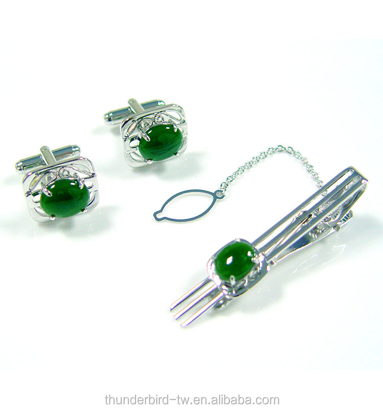 Product name:Natural Green Jade Cuff Link and Tie Clip Sets