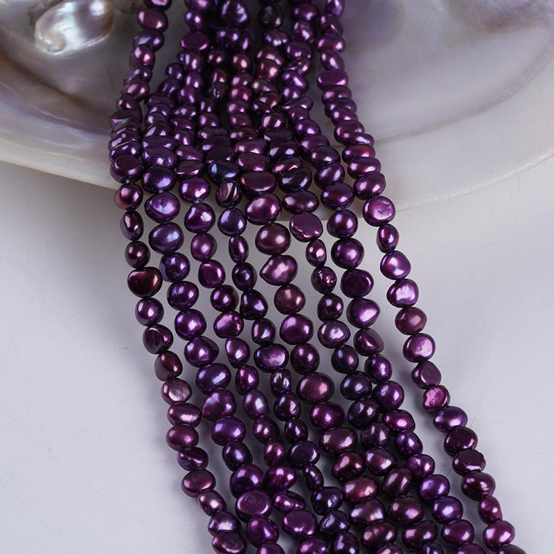ไข่มุกน้ำจืดธรรมชาติขนาด5-6มม. มีรูแบบกระจายสองด้านมันวาวสีขาวไม่เรียบ
