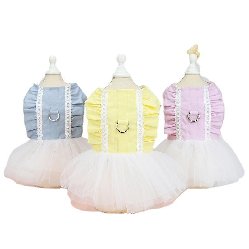 ชุดเดรสสุนัขผ้าโพลีเอสเตอร์สีฟ้าเหลืองชมพูสไตล์คลาสสิกสำหรับคริสต์มาสและฤดูร้อน ขายส่งจากผู้ผลิต