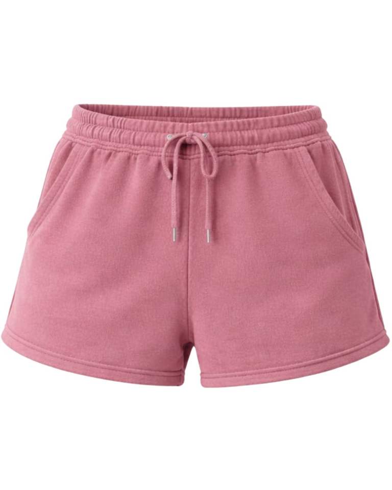 ผู้ผลิตกางเกงขาสั้นผ้าฝ้ายสีชมพูอมเทาสำหรับผู้หญิง เอวยางยืด สวมใส่สบายๆ ในฤดูร้อน ชุดลำลอง ผู้ผลิตตามสั่ง คุณภาพพรีเมียม