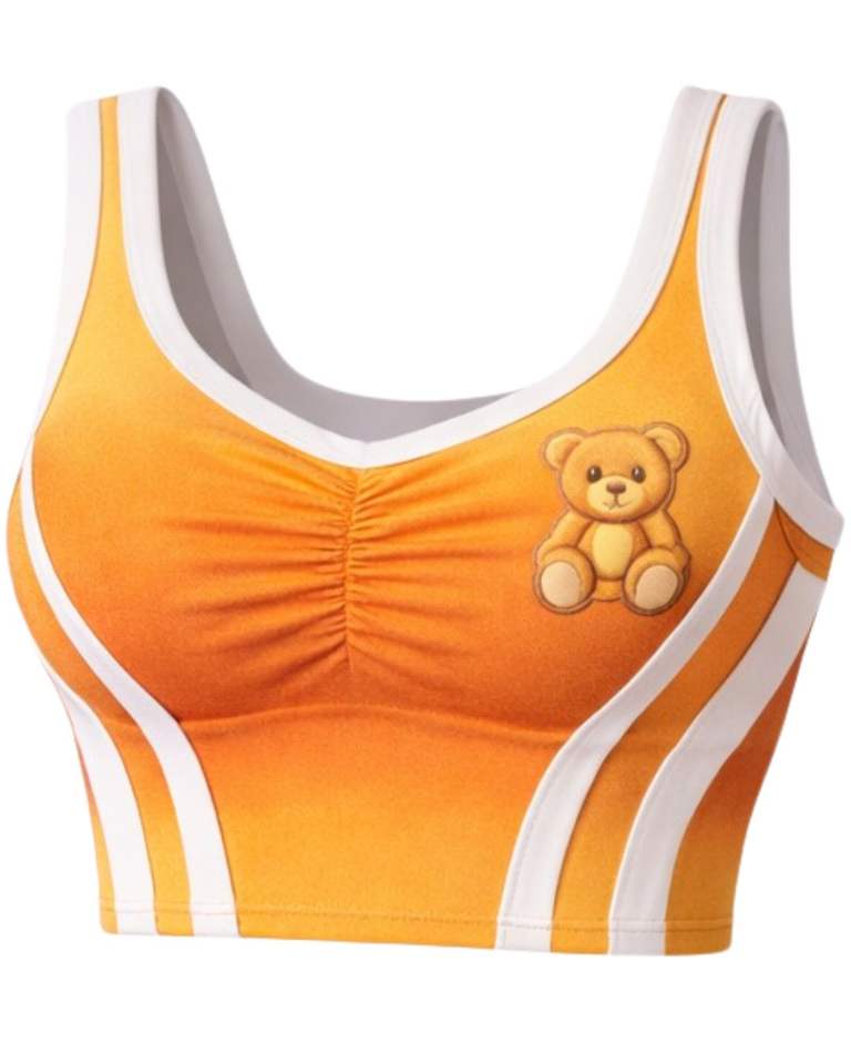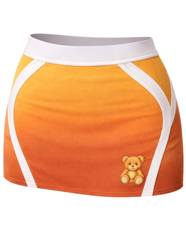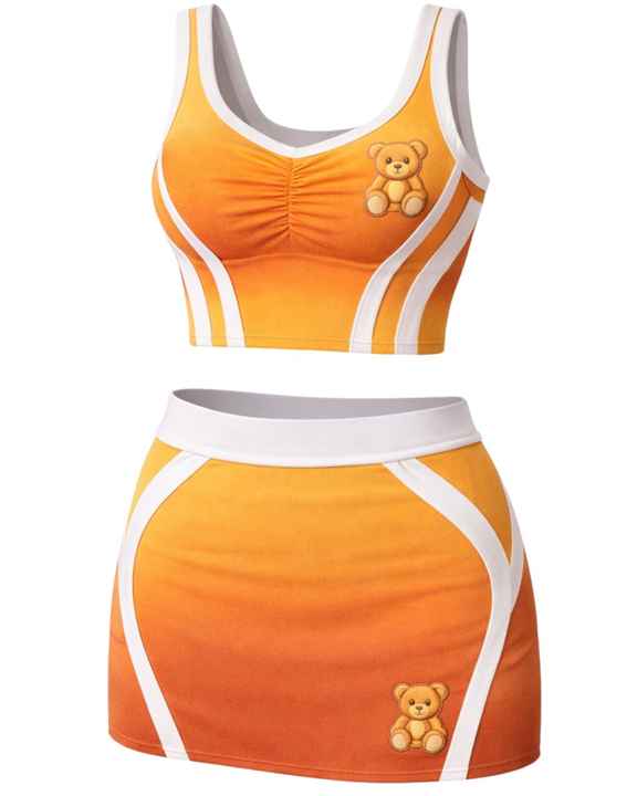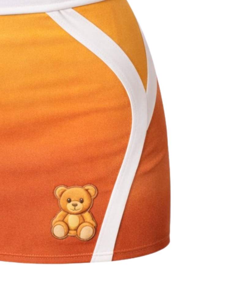 ชุดเซ็ตกระโปรงสองชิ้นสีส้มไล่เฉดสำหรับผู้หญิง เสื้อครอปแขนกุด กระโปรงมินิเอวสูง ผ้าสเตรช ชุดน่ารักสำหรับฤดูร้อน