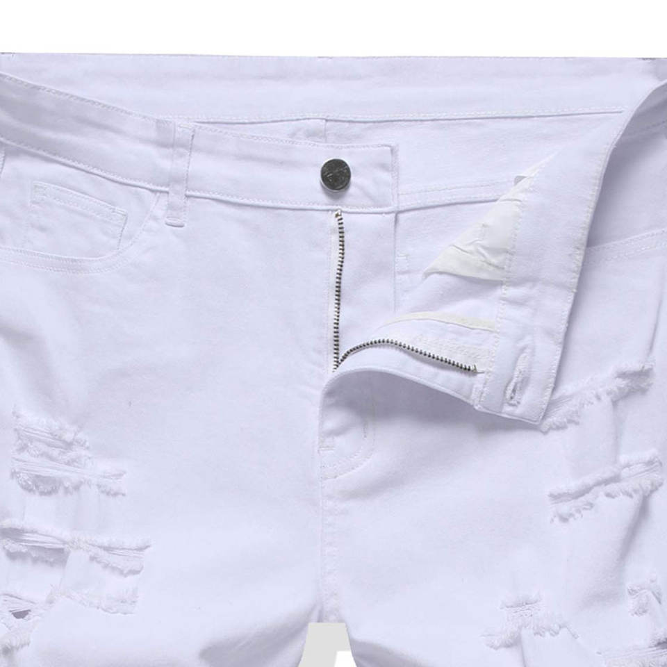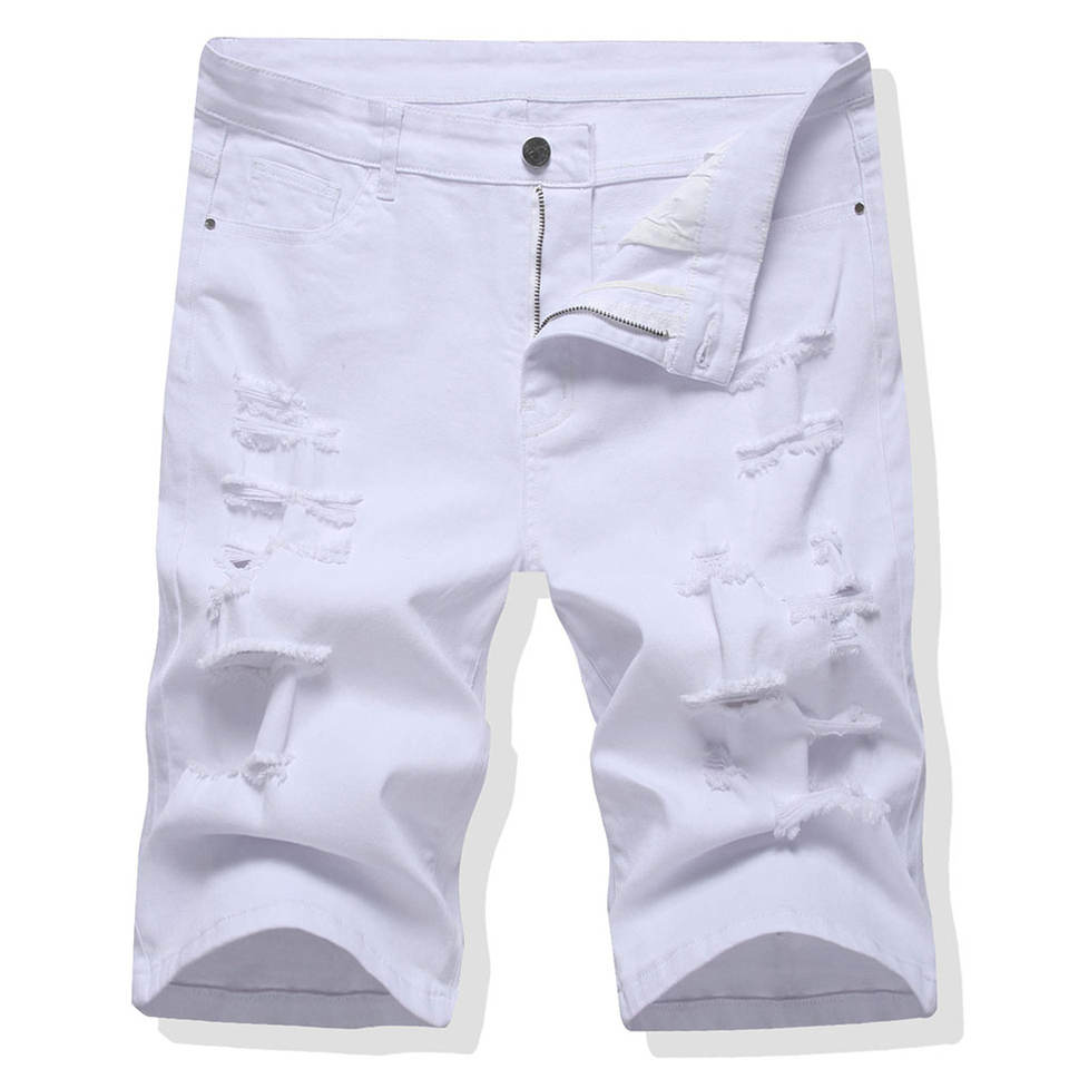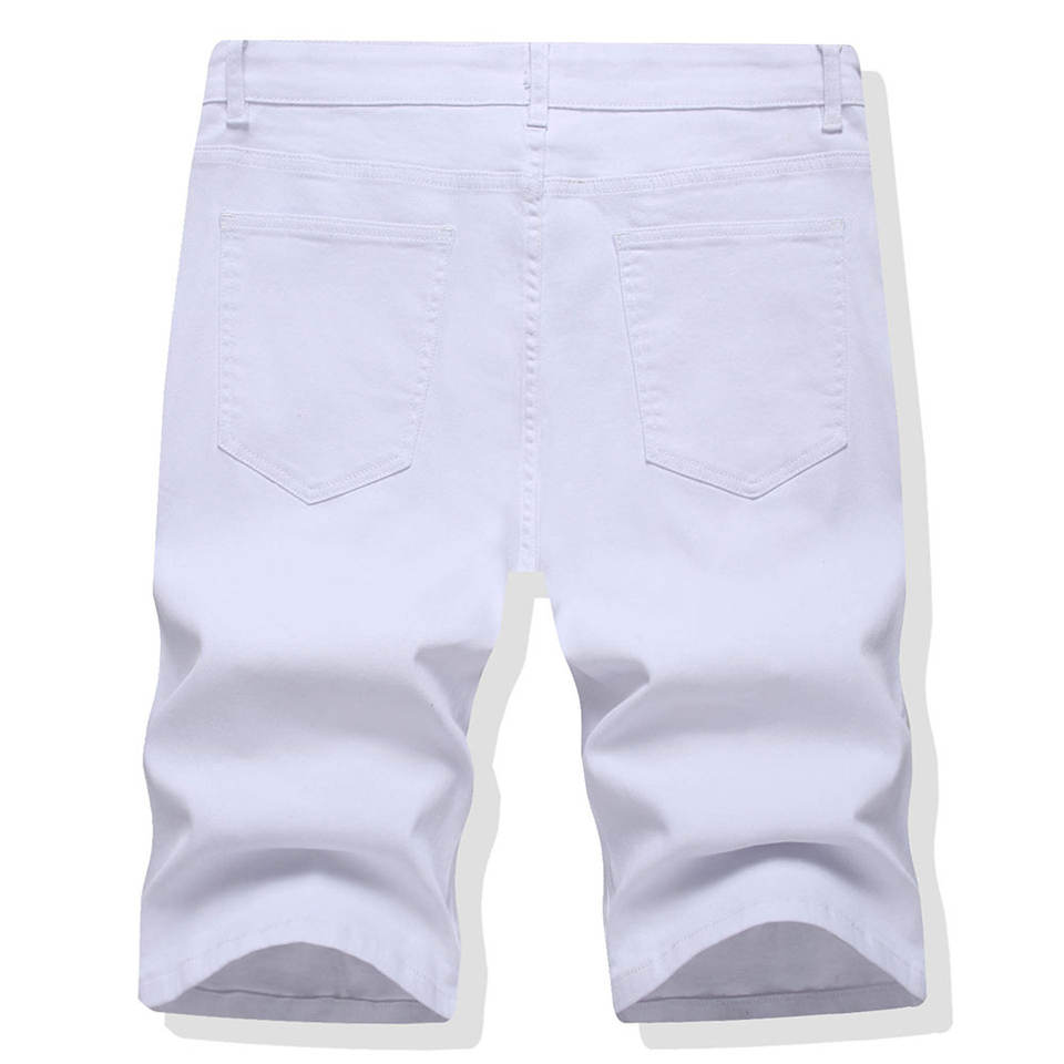 กางเกงยีนส์ขาสั้นทรงตรงเอวกลางสไตล์วินเทจสำหรับผู้ชาย ผ้ายีนส์ฟอกแบบดิสเทรสสั่งทำพิเศษจากโรงงาน เหมาะสำหรับฤดูร้อน
