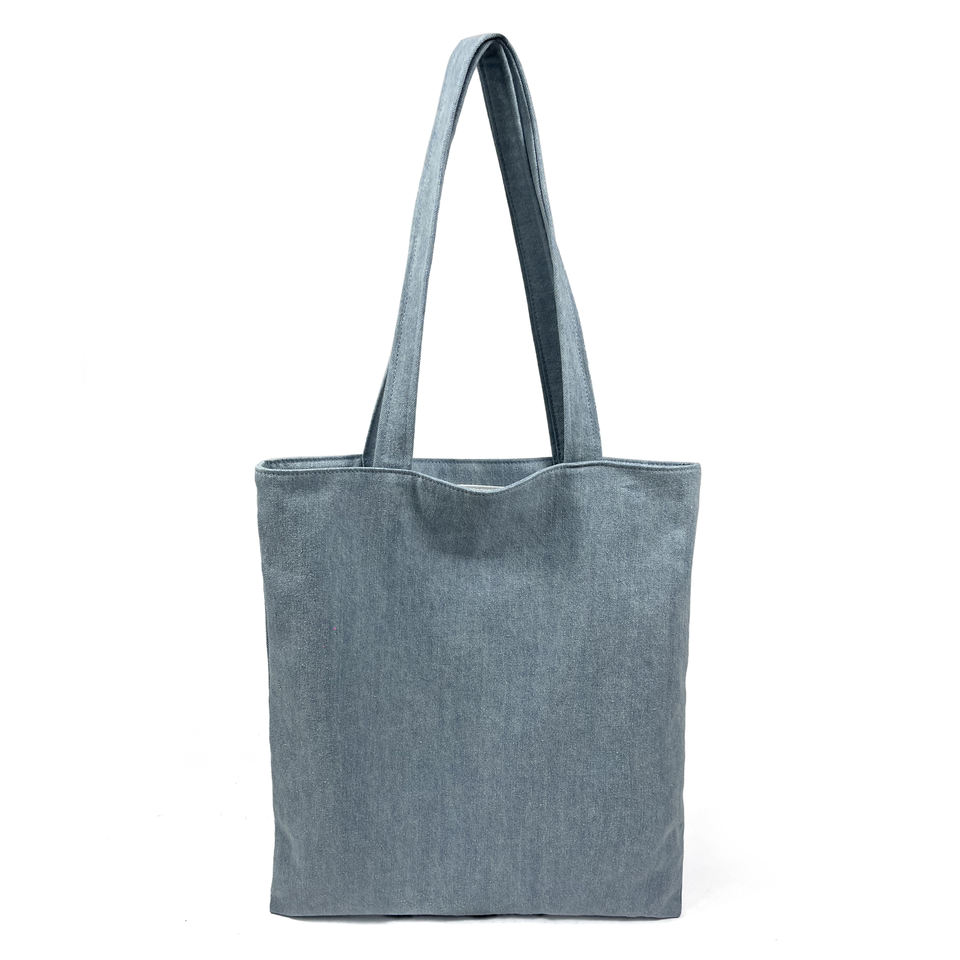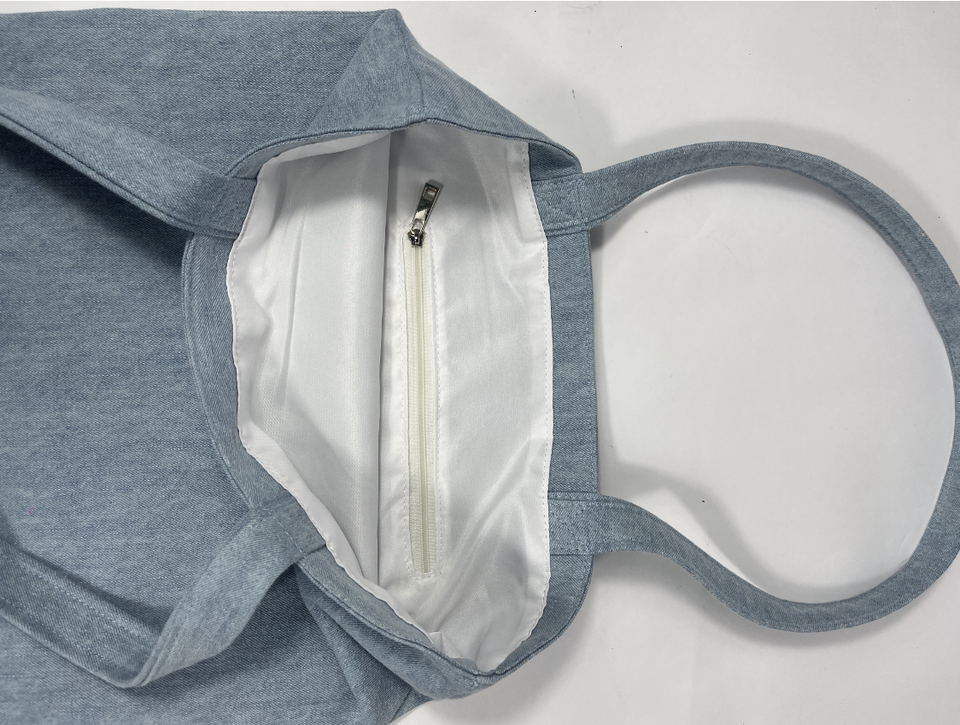 กระเป๋าสะพายไหล่สำหรับผู้หญิงผ้าเดนิมความจุสูงพร้อมอุปกรณ์เสริมโลโก้ขนาดไมโคร