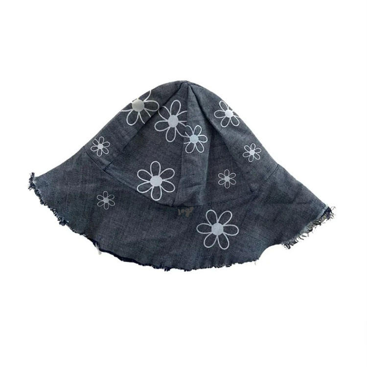หมวกชายหาดดีไซน์สวยจากผู้ผลิต ผ้าฝ้ายเดนิมแท้ 100% ลายดอกไม้ปัก สำหรับทุกเพศ
