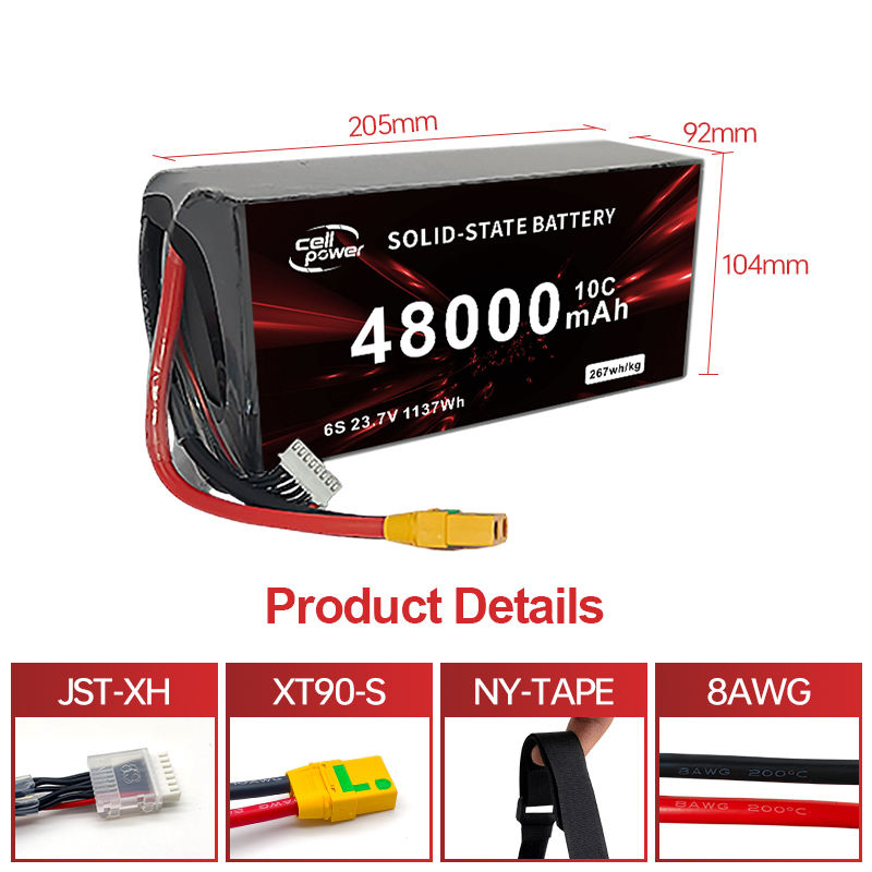 ผู้ผลิตแบตเตอรี่ UAV แบตเตอรี่โซลิดสเตท 48000mAh 267Wh/kg แบตเตอรี่โดรนสำหรับการใช้งานที่กำหนดเอง โรงงานโดยตรง