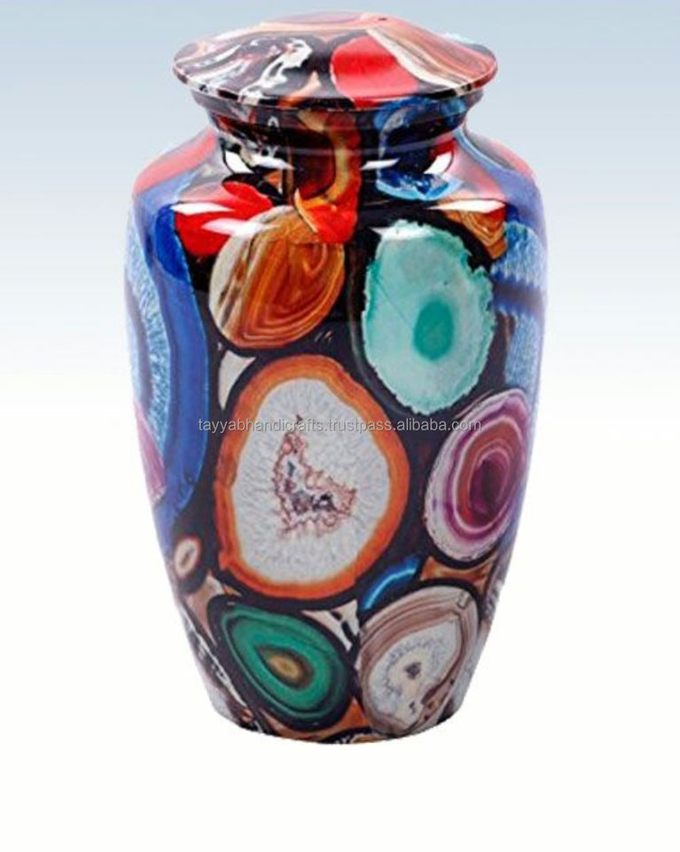 โกศใส่เถ้ากระดูกพิมพ์ลายสำหรับขี้เถ้ากระดูกมนุษย์ศิลปะพิมพ์ลายอลูมิเนียมโกศเก็บขี้เถ้าจากอินเดีย
