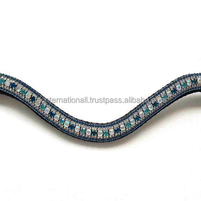 สายรัดคิ้วม้าหนังแท้,สายรัดคิ้วหนังคริสตัล5แถวทำด้วยมือได้ทุกขนาดสำหรับม้า