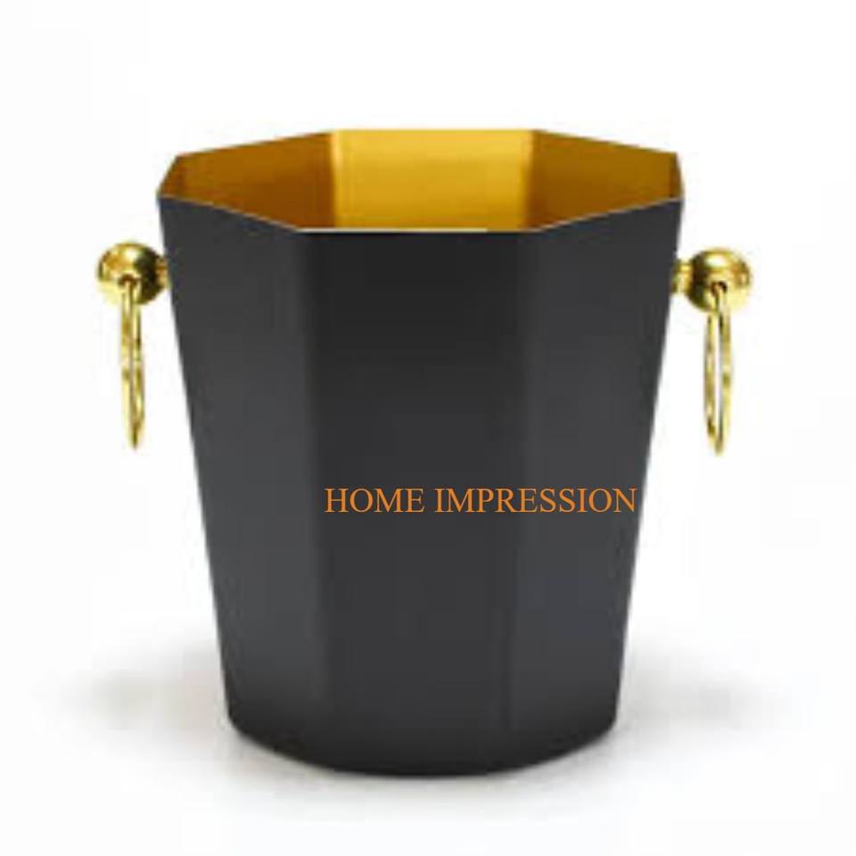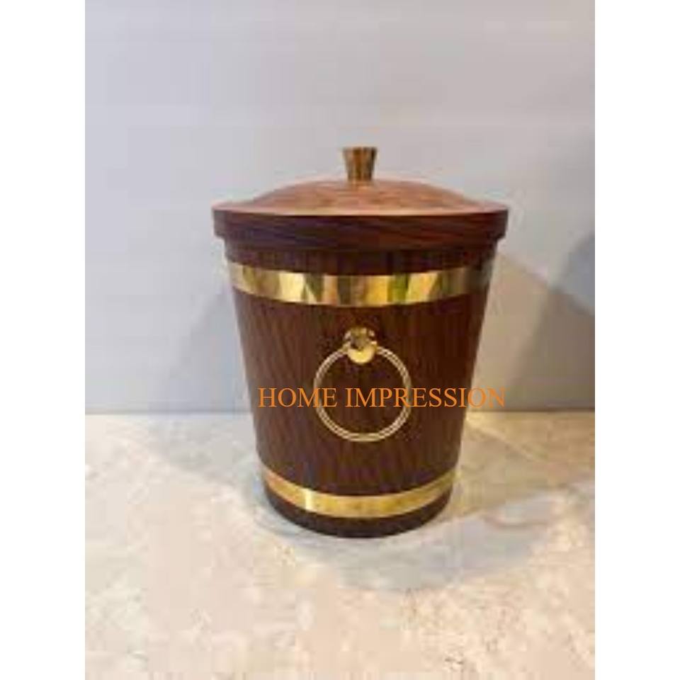 ผู้ผลิตถังขวดไวน์ที่ทำจากไม้และโลหะขัดเงาสีทองพร้อมด้ามจับดีไซน์เนอร์ทรงกวางถังไวน์บนโต๊ะแบบคลาสสิก