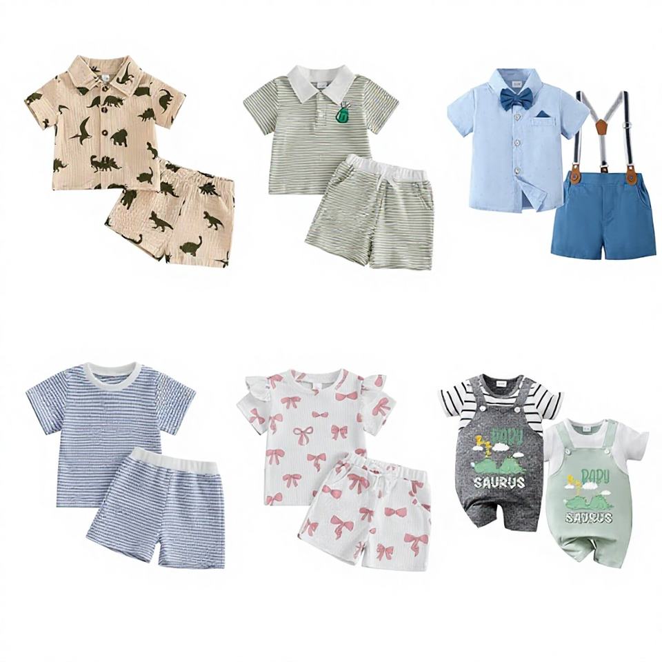เซ็ตชุดนอนแขนสั้นผ้าฝ้ายลำลองสำหรับเด็ก, ชุดเสื้อผ้าลายการ์ตูน TZ-041 0-12ปี
